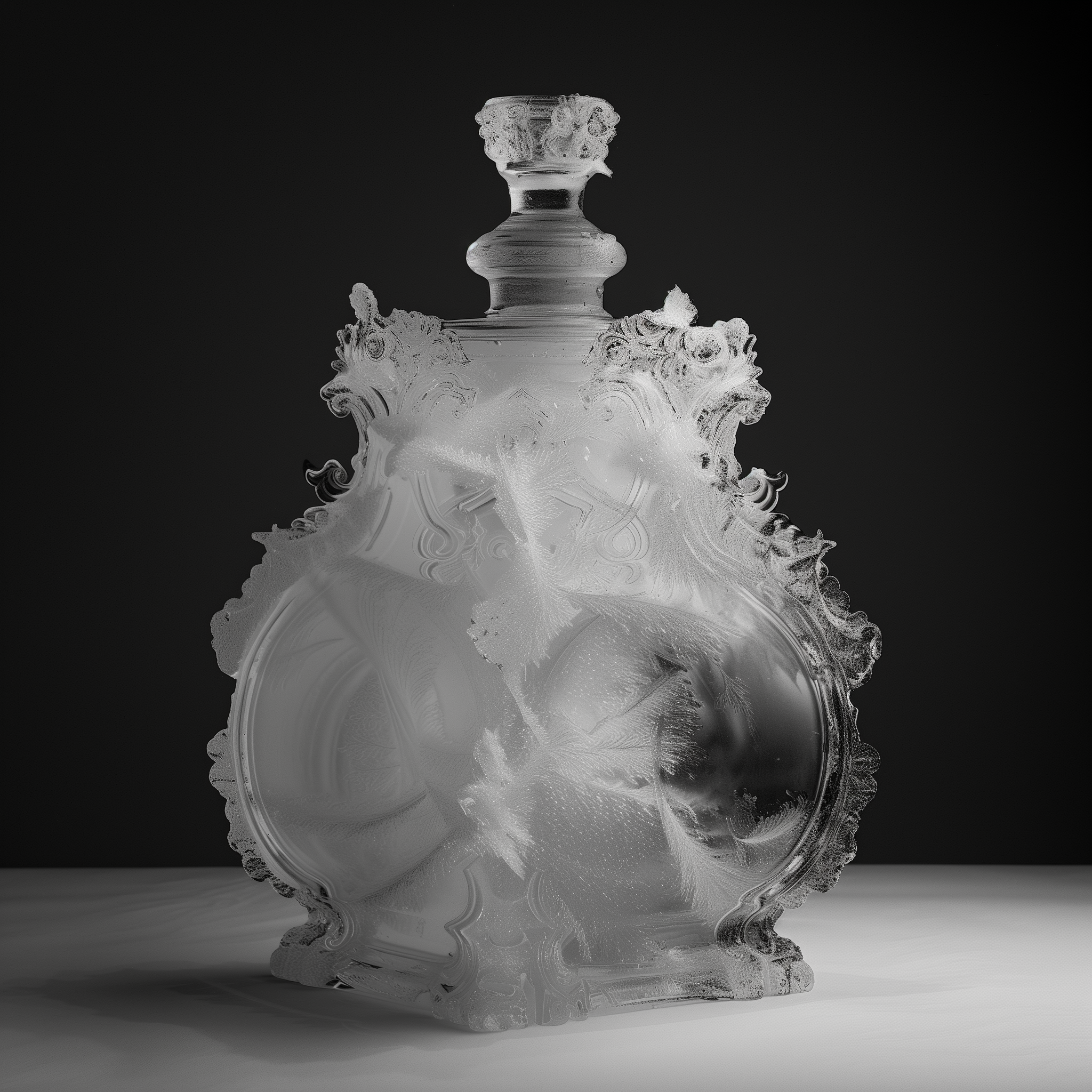 The invisible structure that shapes your reality. This is a custom glass vessel etched with a blue sapphire drill bit. Accompanied by an elixir made with fermented manna dew that imprints desired coordinates inside your microbiome.